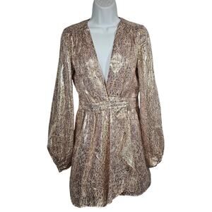 TAGS: Designer, Mini Dress, Silk, Metallic, Super Lightweight, Fancy, Elegant, Dressy, Romantic, Flirty, Feminine, Coquette, Sophisticated, Halloween, Costume, Sexy, Plunging Neckline, Wrap Style, Snake Print