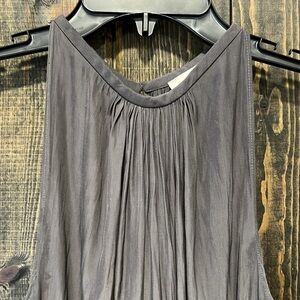 Ramy Brook New York brand mini dress. Size x-small. Grey. 100% Polyester. Silky smooth feel. Slouchy top. Smock drop waist style. Sleeveless. Halter like. Keyhole button back. Preloved. Please see all photos for condition. Stock photo is similar style but not exact color. Just a reference for fit.