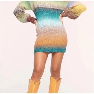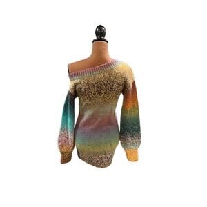 Turn heads in this stunning off-the-shoulder sweater dress by Ramy Brook. Featuring a bold blue multi-color design, this dress is both cozy and stylish. Perfect for those cooler days when you still want to look chic! Brand new with tags.