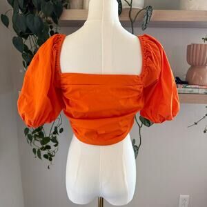 Ramy Brook Orange Puff Sleeve Tie Front Crop Top Medium Festival Boho Glam