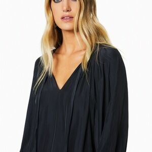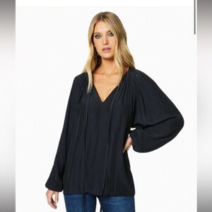Ramy Brook "Paris" Black Long Sleeve Crepe de Chine Blouse