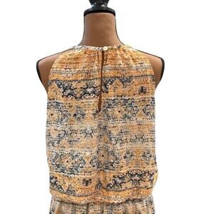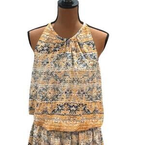 This stunning yellow and blue dress from Ramy Brook is perfect for adding a pop of color to your wardrobe! Featuring a smocked waist, blouson bodice, and sleeveless design.