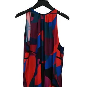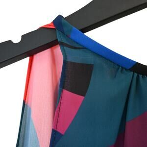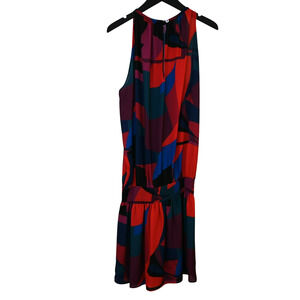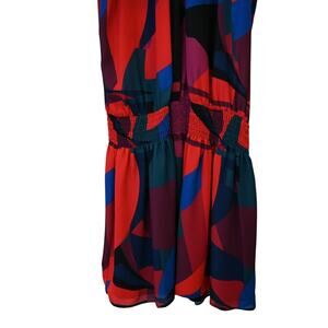Ramy Brook Paris Smocked Mini Blouson Dress XS Abstract Printed Red Blue