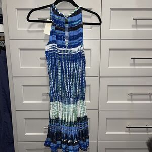 Ramy Brook Paris Warp-Print Sleeveless Blouson Dress XS Navy/Green