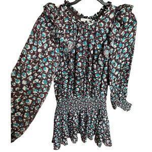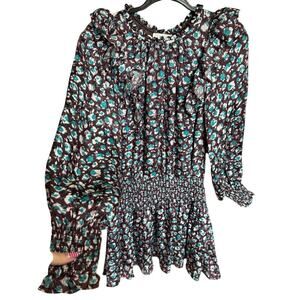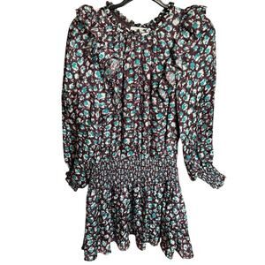 Ramy Brook Penelope Dress Ruffled Smocked Mini Long Sleeve Pullover Size Small