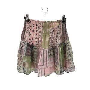 Ramy Brook Printed 'Robyn' Pink Skirt Size S/P: cinched at waist but ruffled at bottom, measurements: 11.5 inch width x 15 inch length.