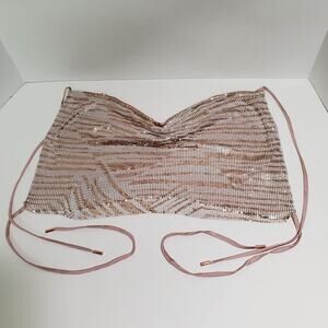 Ramy Brook Printed Rosa Halter Top XXS Metallic Chainmail Rose Gold Slinky New
