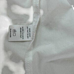 From a smoke-free, pet-free home. There is a small discoloation mark approx 1/4 inch under the right armpit. It is not visible from a normal distance. I have included a magnified picture for your review.