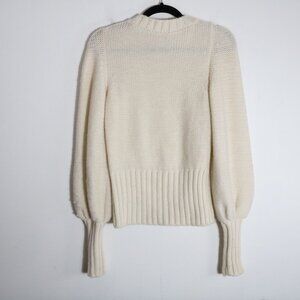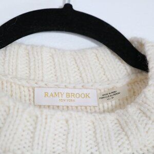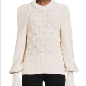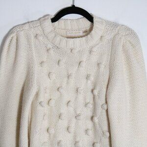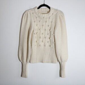Ramy Brook Rachel Ivory Pom Pom Sweater XS Alpaca Wool Crewneck Bishop Sleeve