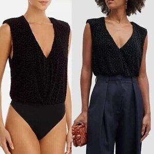 Ramy Brook 'Regina' Flocked Black Velvet Bodysuit Size XXS Unworn