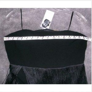 Update the LBD with this chic strapless mini version featuring flowy fringe details.
