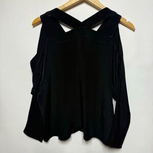 Ramy Brook Riley Cold-Shoulder V-Neck Silk Top in Black XS