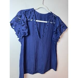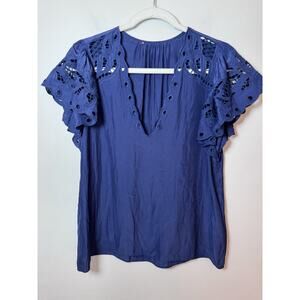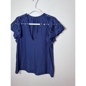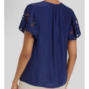 Ramy Brook Rochelle V-Neck Flutter Sleeve Blouse – Navy Blue Sz S $345 NEW