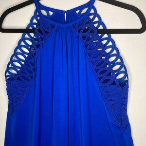Ramy Brook Royal Blue Halter Tank Top Like New Size Small Embellished Neckline
