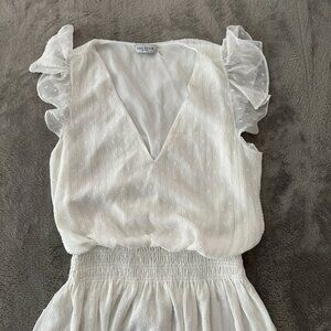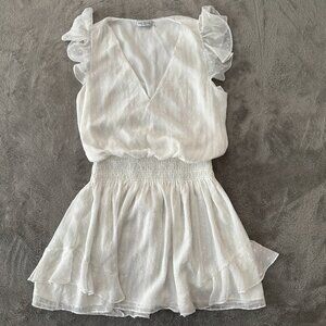 Ramy Brook Ruffled Simona Dress White Women's LARGE Mini Flutter Sleeves Bridal