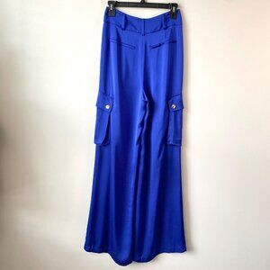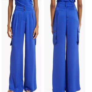 Ramy Brook Rumer Satin Cargo Pants Women's Size 2 Cabana Blue High Waist Pleated