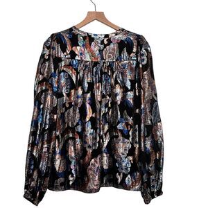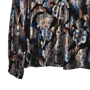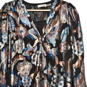 Ramy Brook S Trey Metallic Floral v neck button down Blouse
