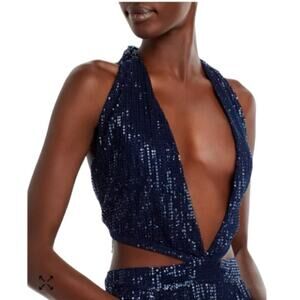 Ramy Brook Sequin Gown Size 14 Deep V Neck Navy Blue Retails $695