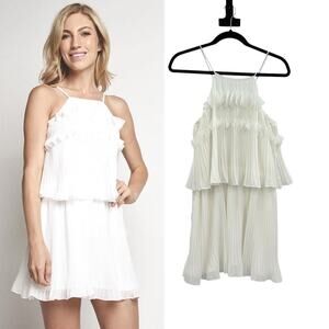 Ramy Brook Shauna Dress Pleated Tiered Chiffon Ivory White Size Small