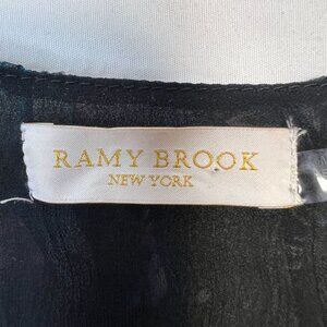 Ramy Brook Silk Ruffle Mini Dress Black Purple Paisley Cocktail Boho Medium