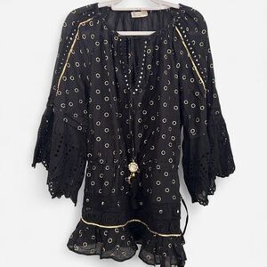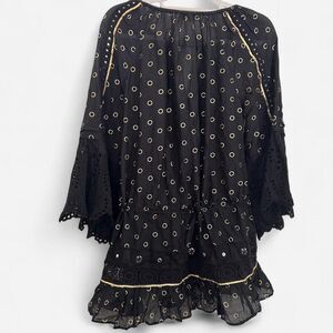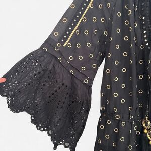 Ramy Brook Silk cotton Nico Mini Cover-Up Dress XS/S ✨ Eyelet Lace + Mirror Circle Gold Tassel Detail