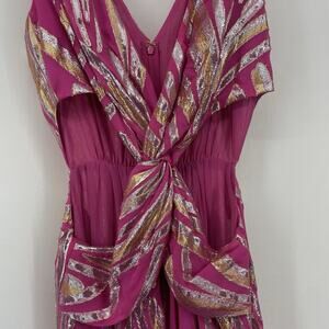 Ramy Brook Size 10 Irene Cocktail Dress Pink Silk Metallic Twisted Cutout Womens