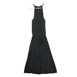 Ramy Brook Size S Black Halter neck Dress With Braided Waist Tie Belt and Pockets