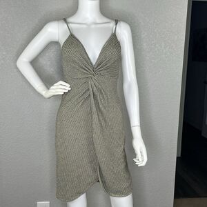 Ramy Brook Size XS Dress Mini Sleeveless Rainbow Stripe Metallic Twist Front