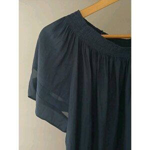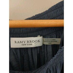 Ramy Brook Smocked Off-the-Shoulder Blouse. Size Medium. Blue. Short, wide sleeves with sheer band. Night Out, event, quiet luxury. In nice, preowned condition. No flaws noted. Measures approximately 20" pit to pit, 22" shoulder to hem.