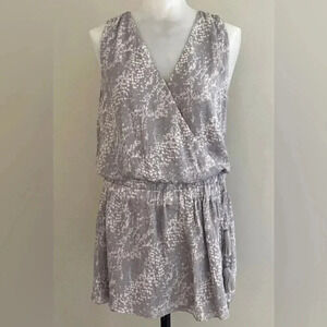 Ramy Brook Snake Print Wrap Drawstring Waist Band Sleeveless Mini Dress Pretty Grey Snake print design all over V neckline with small hook closure Sleeveless Lightweight & breezy Wrap skirt with lining with a layered elastic waist band with adjustable drawstring tassels