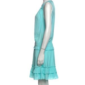 Chic sleeveless mini dress. Features a V-neckline. Elegant layered skirt design. Retails for $400 tags still attached beautiful aqua color