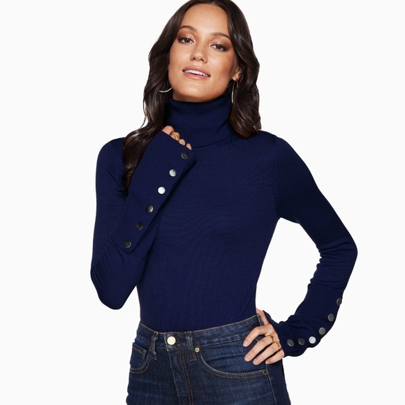 Ramy Brook Turtleneck With Button Accents on the Sleeves - Navy