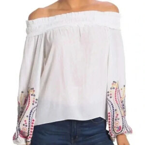 Ramy Brook White Carly Embroidered Off the Shoulder Boho Top New W/Tag $345 S