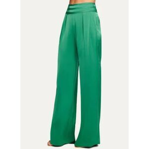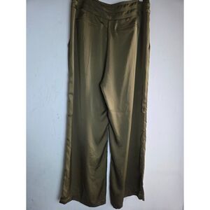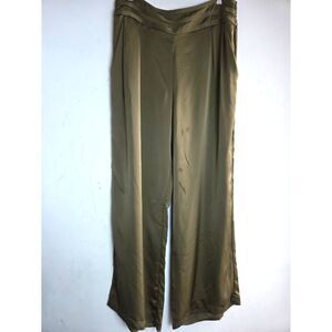 Ramy Brook Women "Joss" Olive Green Silky Satin Wide Leg Trouser Pants size 14