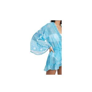 Turn heads at the pool or beach in this stunning Ramy Brook “Alegra” swimwear cover-up. Featuring intricate beaded detailing and a flattering wrap silhouette, this piece effortlessly blends glamour with comfort. The lightweight fabric drapes beautifully, while the vibrant turquoise hue adds the perfect pop of color.