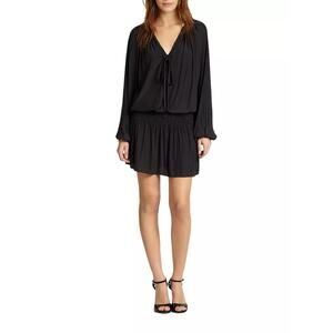 Ramy Brook Womens Paris Blouson Mini Dress Sz Small Black Smocked Whimsigoth