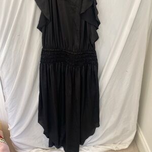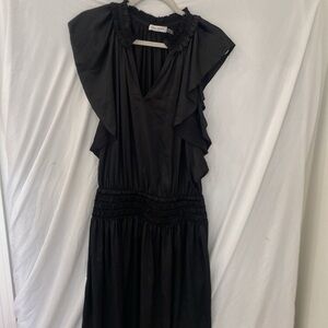 Ramy Brook Wren Dress Size med Black Flutter Sleeve Midi Smocked Waist Ruffled