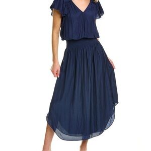 Ramy Brook Yassi Navy blue smock waist gorgeous dress Sz Small Petite