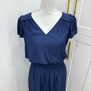 Ramy Brook Yassi Navy blue smock waist gorgeous dress Sz Small Petite sexy classic style V neck