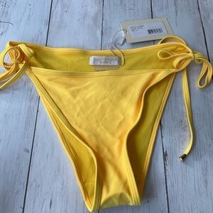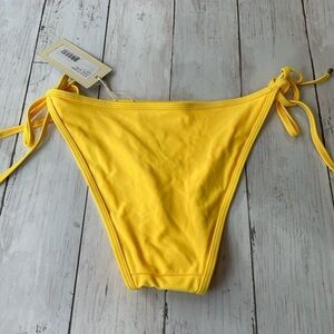 Bright yellow bikini bottom. Features side tie details. Perfect for a sunny day at the beach.