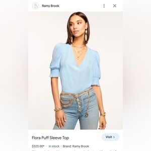 RAMY BROOK Blue Flora Puff Sleeve in size XXS