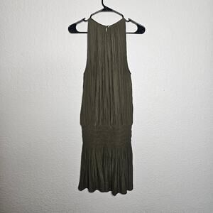 Ramy Brook dress size Large olive green drop waist high neck mini sleeveless