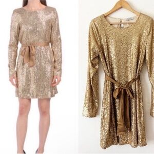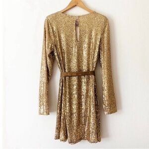 Ramy Brook gold sequin mini dress with detachable waist tie NWT