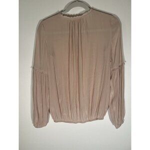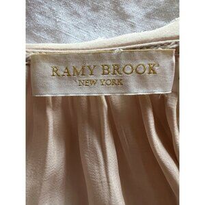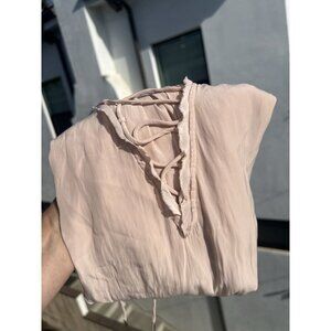 Ramy Brook light pink lace-up peasant blouse ruffle fringe sz XS coquette