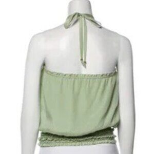 Size small, Ramy Brook green Silk Crop Top halterneck with ruffle embellishment. LIke new condition.