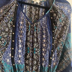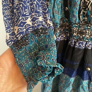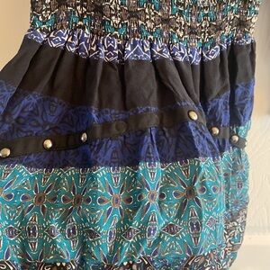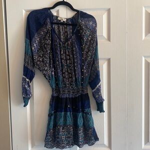 Ramy Brook silk patchwork print studded smocked mini dress size XS