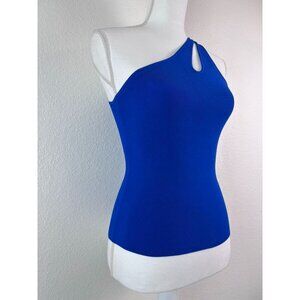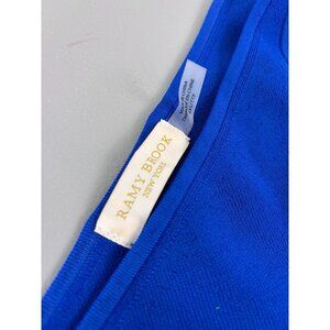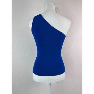 Ramy Brook brand women's size XXS royal blue Indira top. In like new condition, only sign of someone trying on is a very light deo spot on one arm. I have not tried to remove. Ribbed stretch material for a form fitted look. One shoulder with a cutout across the front.