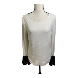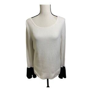 Ramy Brook francette ribbed with bell sleeves cuff in black. Sweater white and black. Viscose cashmere blend. Size Large.