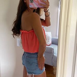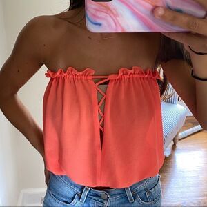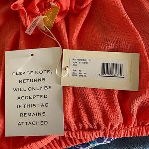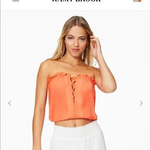 SOLD OUT ONLINE. Ramy Brook Mika Top in bright coral. Strapless sheer top can be worn as a coverup or as a regular top. NWT. Small flaw as shown in photo, came with that when I ordered it.