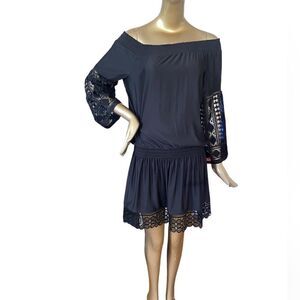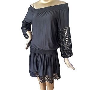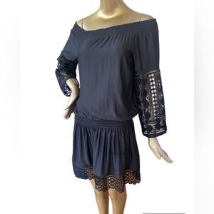 Ramy Brook Off The Shoulder Mini Dress Lace Details.l/s features elastic waist S
